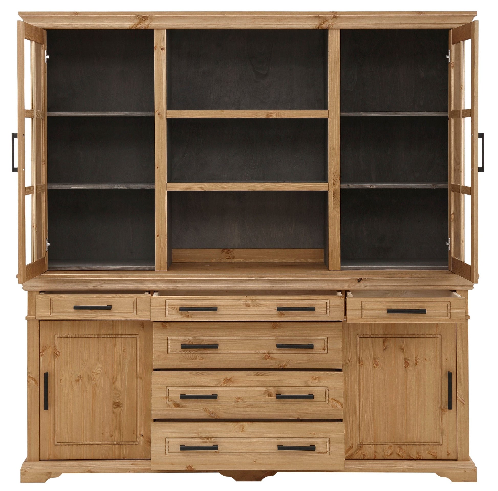 A real highlight for your home is the tasteful “Anabel” display cabinet from Home affaire for wall mounting. This display cabinet in a trendy country house style is a special eye-catcher in the dining room or kitchen. The standing display case brings plenty of storage space into your home. In the upper area there are doors with glass inserts and open compartments. Small items of all kinds find space in the centrally mounted drawers. The space available is further expanded in the lower area. The display cabinet is made from FSC®-certified solid wood. It impresses with its robust features and durability. The tasteful “Anabel” wall-mounted display case from Home affaire is an enrichment.