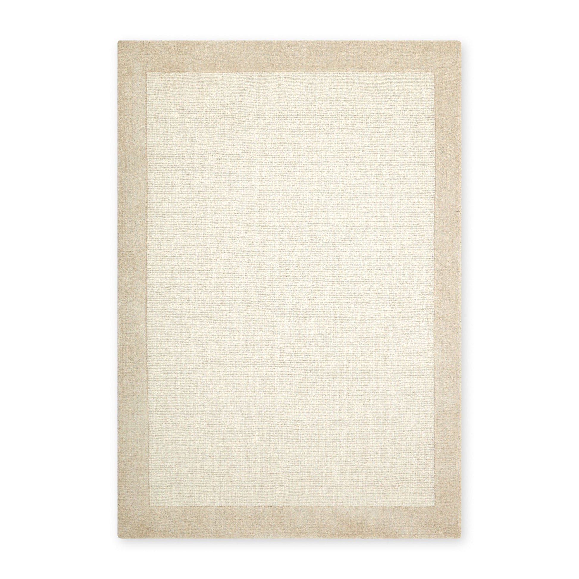 A handwoven tonal border wool rug with a contemporary textured look and a 2 cm pile height. Naturally durable, stain resistant and easy to clean.