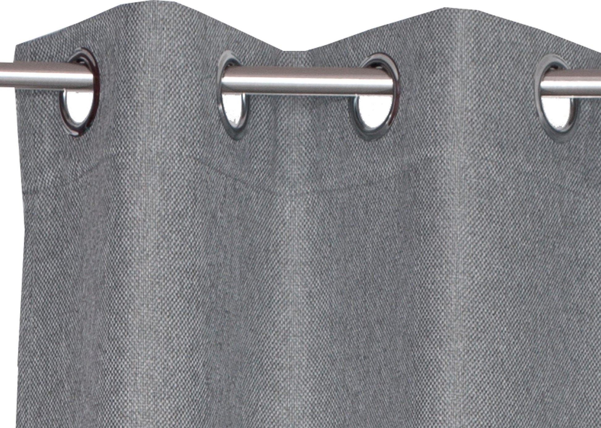 Ready-made curtain with eyelets. Opaquely woven, coarse melange fabric in a modern natural linen look. Ready-made curtain with dim-out function.