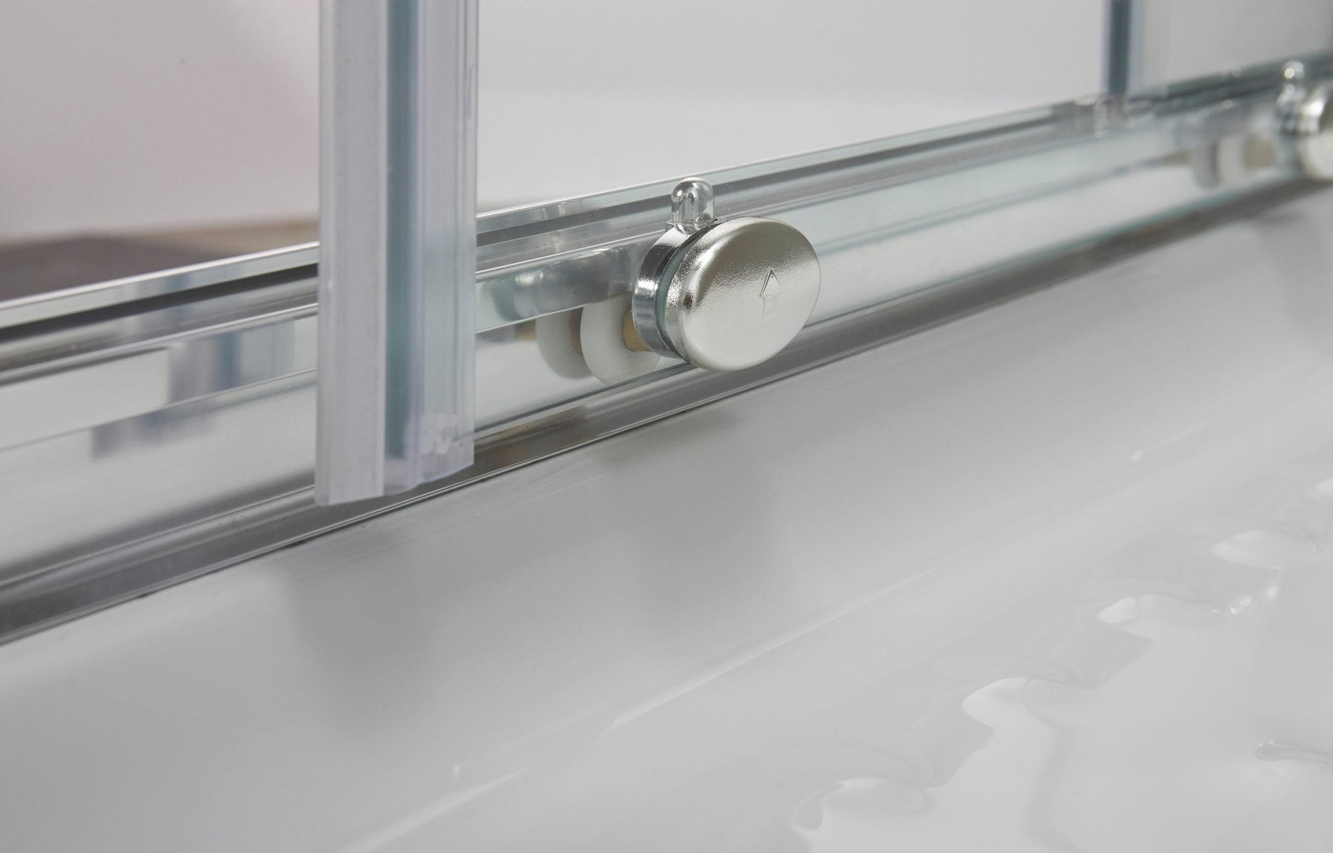 Showering can be so luxurious! The “Summer” corner shower cubicle from welltime offers the highest level of showering comfort. The shower partition made of clear 6mm thick safety glass has two smooth-running sliding doors that offer an entry width of a good 50 cm. The massive shower wall is framed by metal profiles in a classy chrome look. The height including the shower tray is 204 cm, the height of the glass partition is 190 cm. Delivery without shower fitting and shower tray.